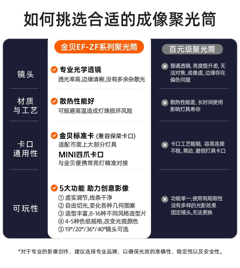 金贝EF-ZF1/ZF2/ZF3调焦成像聚光筒20°/36°/40°镜头艺术造型插片菲涅尔束光筒创意拍摄聚光罩摄影光影附件