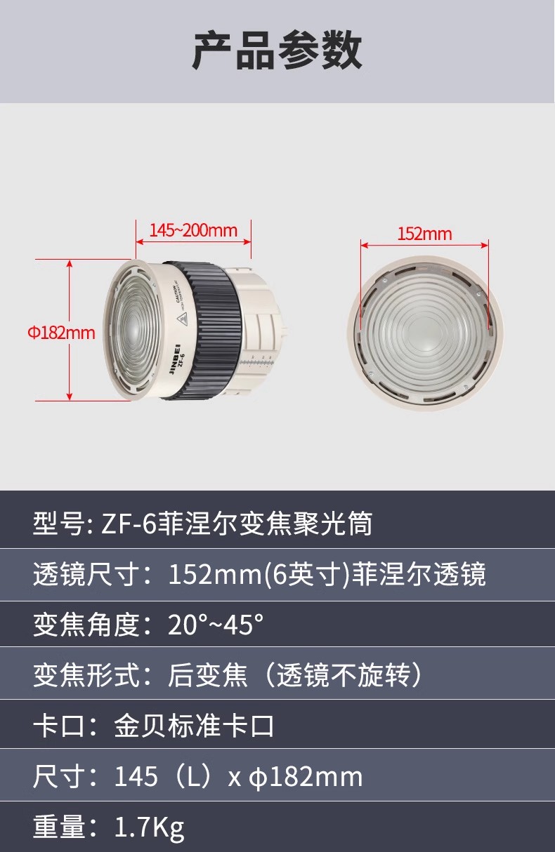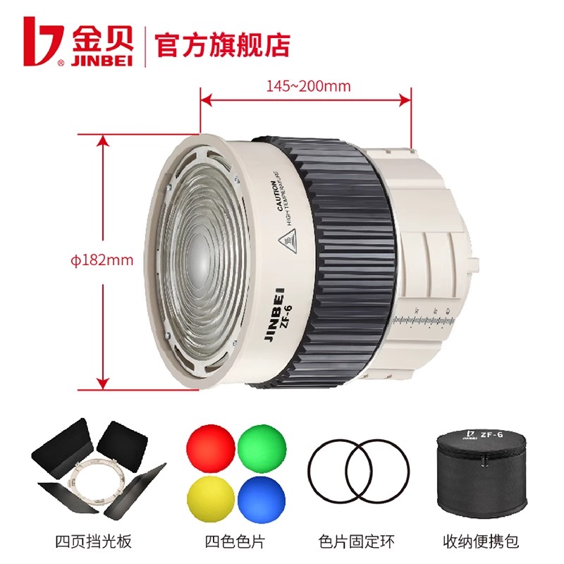 金贝ZF-6菲涅尔透镜变焦聚光筒LED摄影灯光影附件调焦聚光镜头光学艺术造型创意拍摄聚光筒