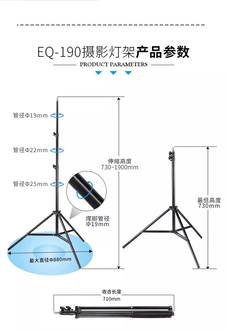 商品名称:金贝EQ系列轻便摄影灯架led补光灯棒灯闪光灯机顶灯三脚架视频拍摄拍照直播落地支架便携折叠快速收合